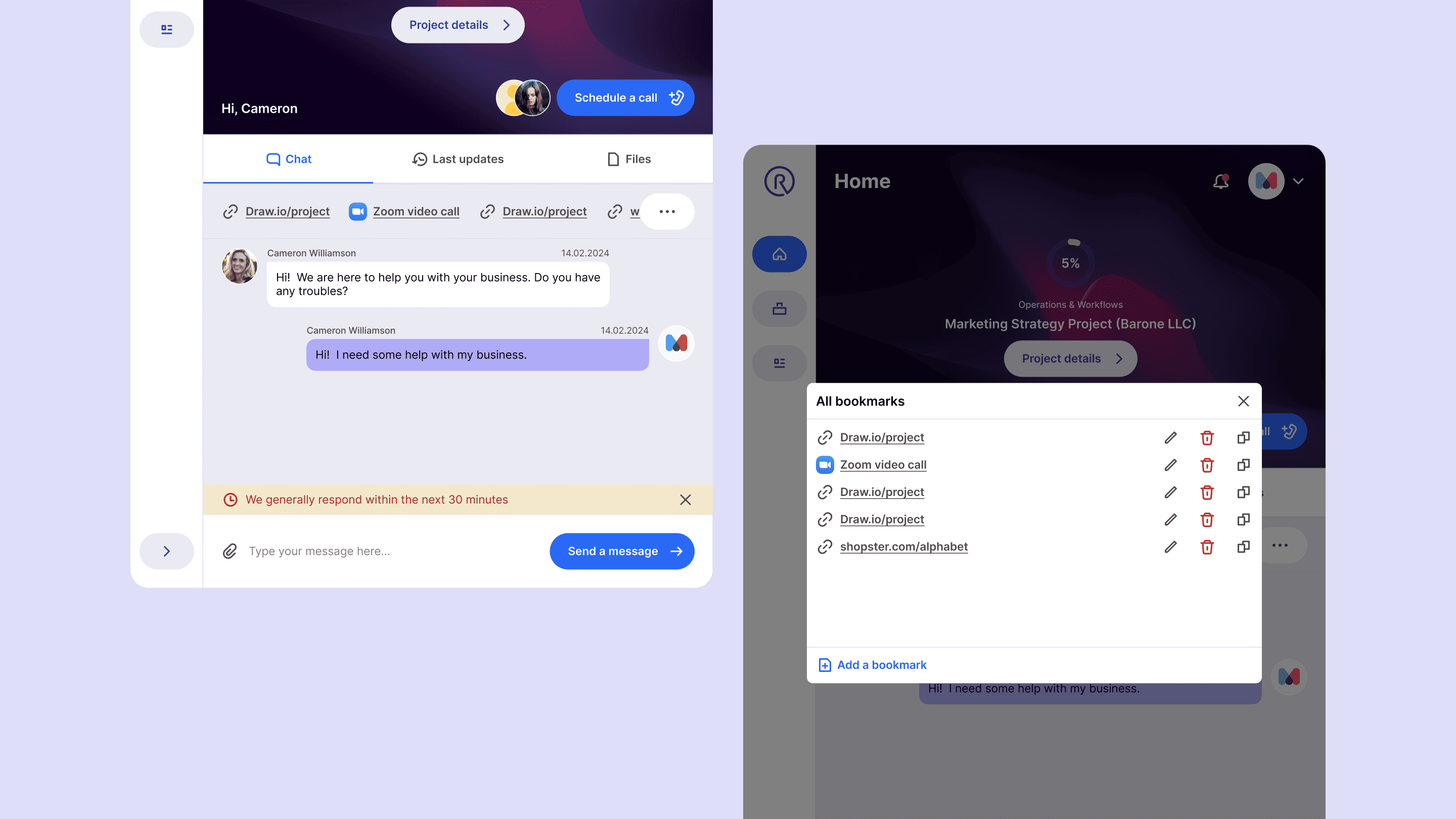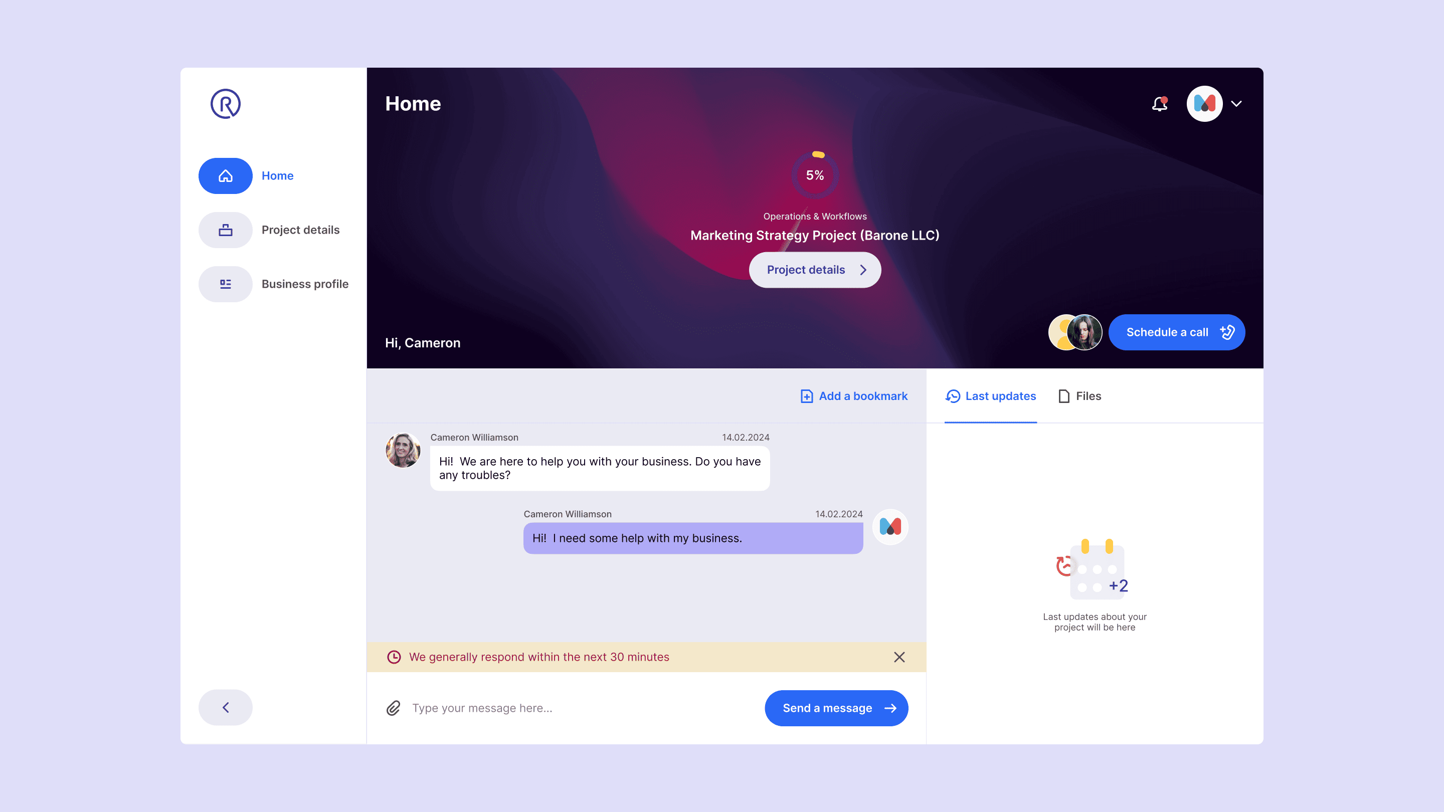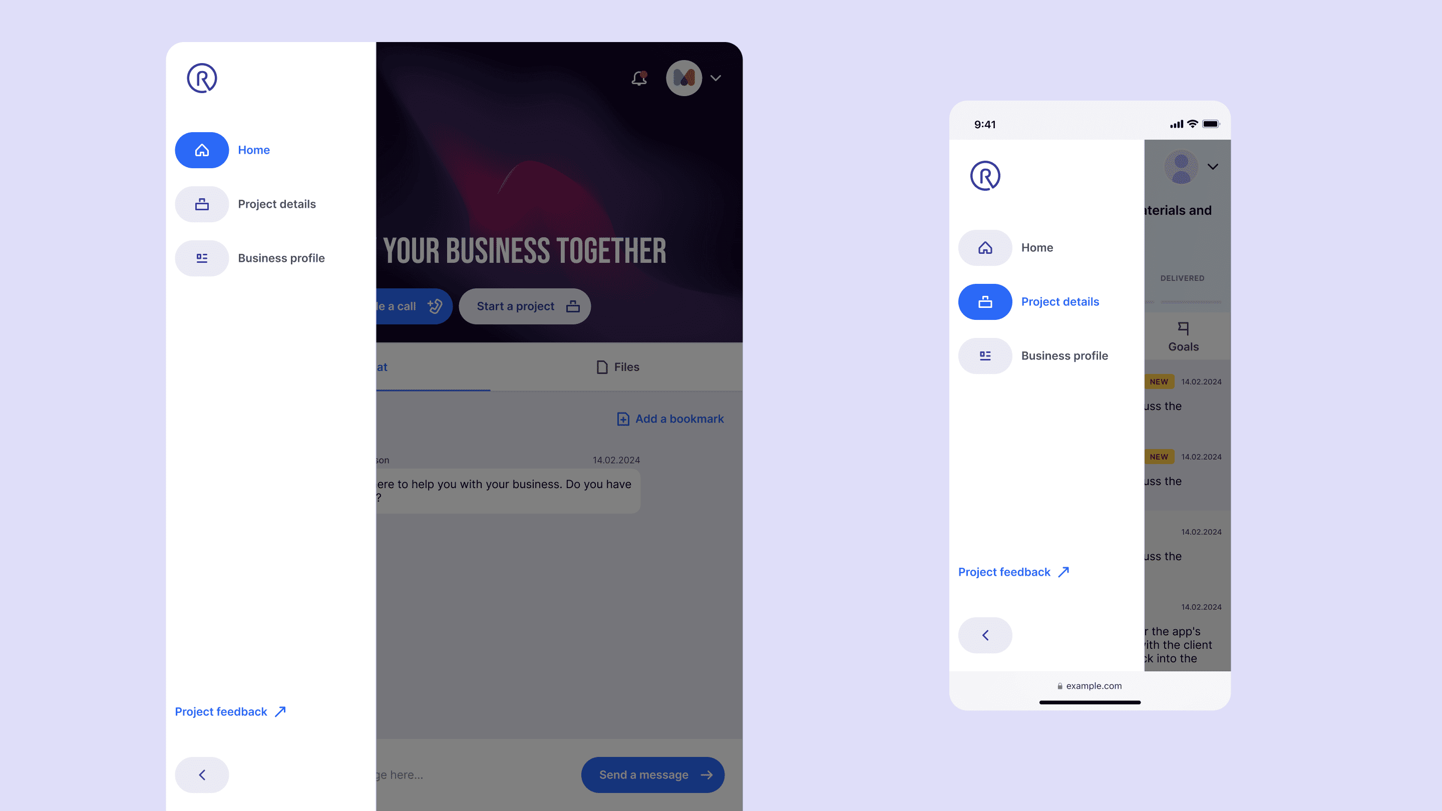 Web application for the internal team (the team provides consulting services). The application was intended to improve interaction between clients and the team, ensure a better user experience, and allow for progress tracking. The previous version was outdated, inconsistent, inconvenient to use, and unfinished. It was decided to design and implement the application from scratch using the no-code platform Bubble. After several proposed UI concepts, the client chose a visual style. Based on that, and alongside the development of a custom Design System, all necessary mockups were prepared (including adaptations for mobile and tablet screens), element states, graphic assets, and developer handoff notes.